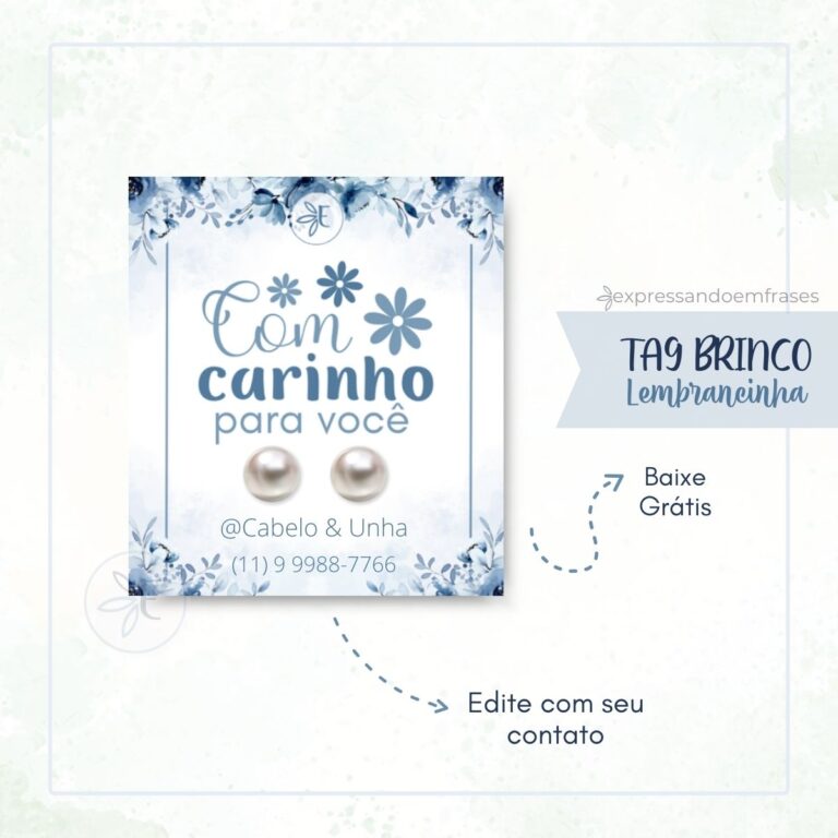 Lembrancinha delicada para cliente. Baixe grátis o arquivo da Tag para brinco na cor azul.
