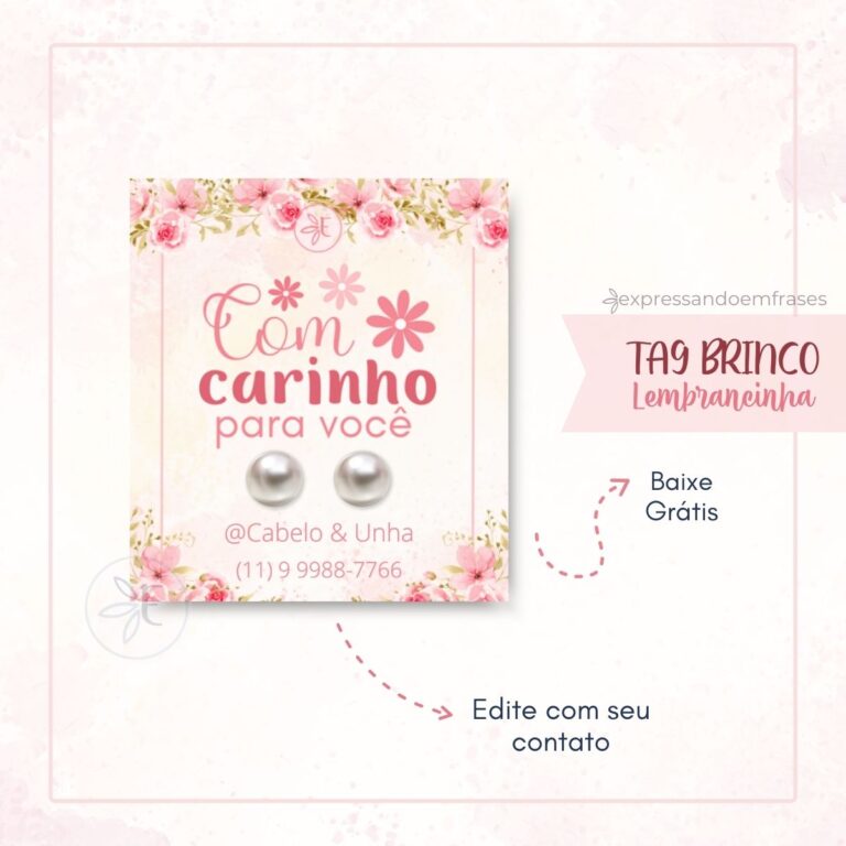 Lembrancinha delicada para cliente. Baixe grátis o arquivo da Tag para brinco na cor rosa.