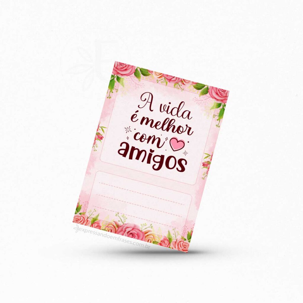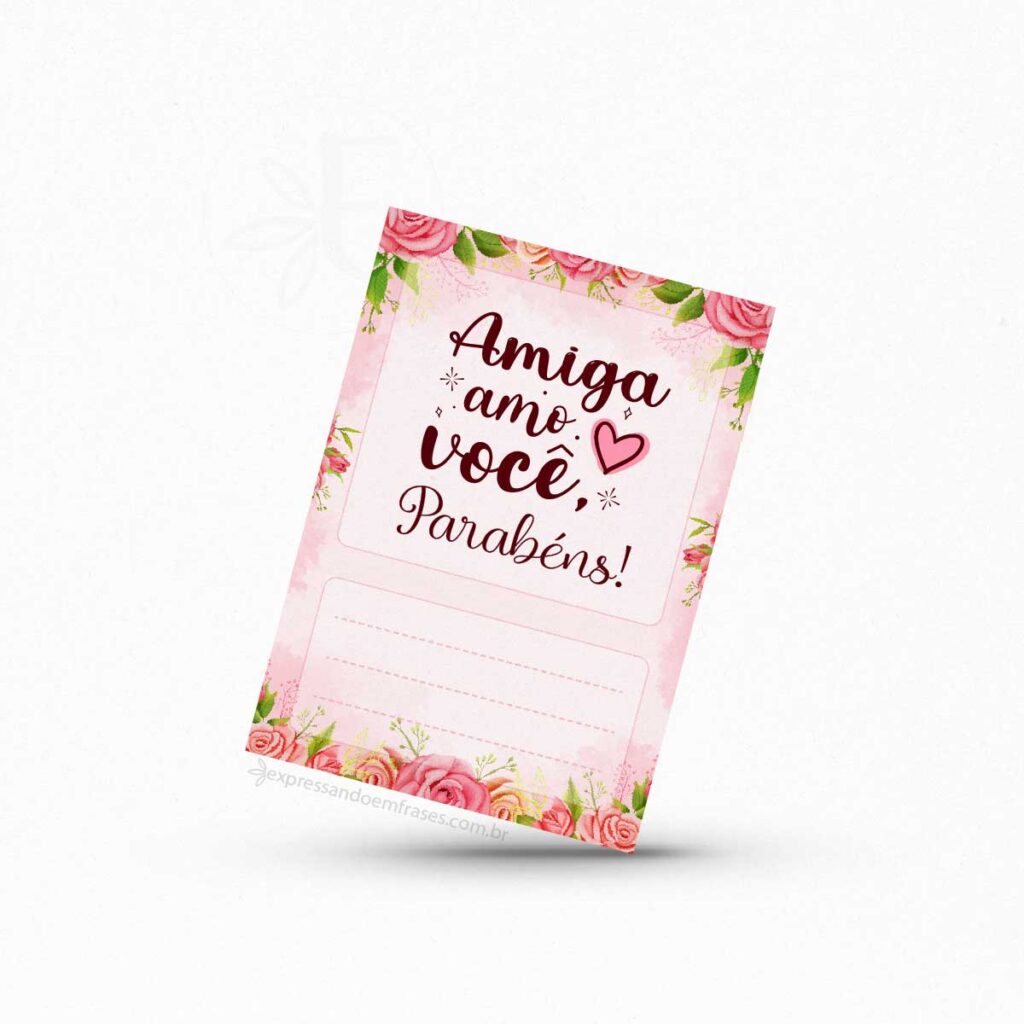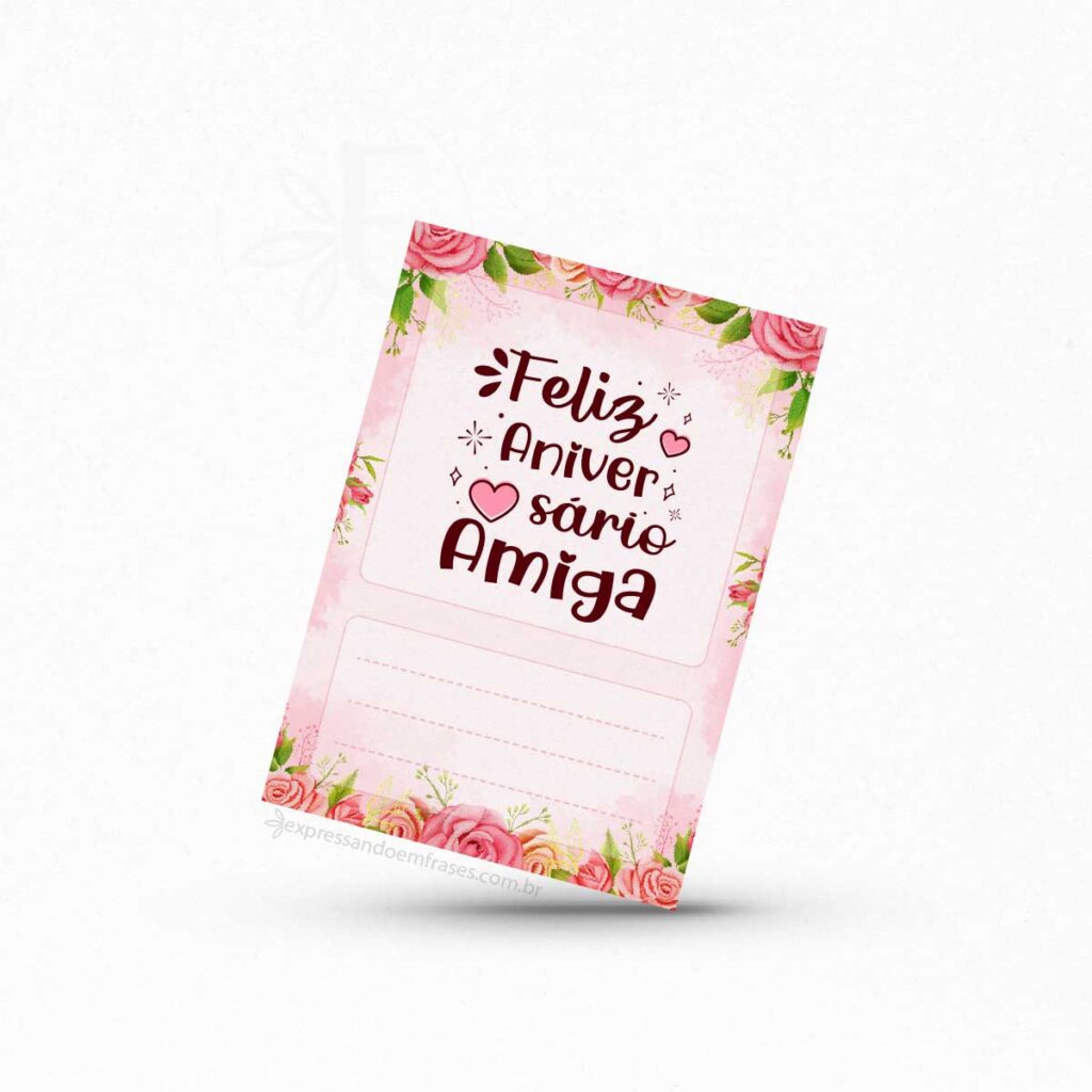 Cartões com Frases Carinhosas: Feliz Aniversário Amiga – Tema Floral Rosa