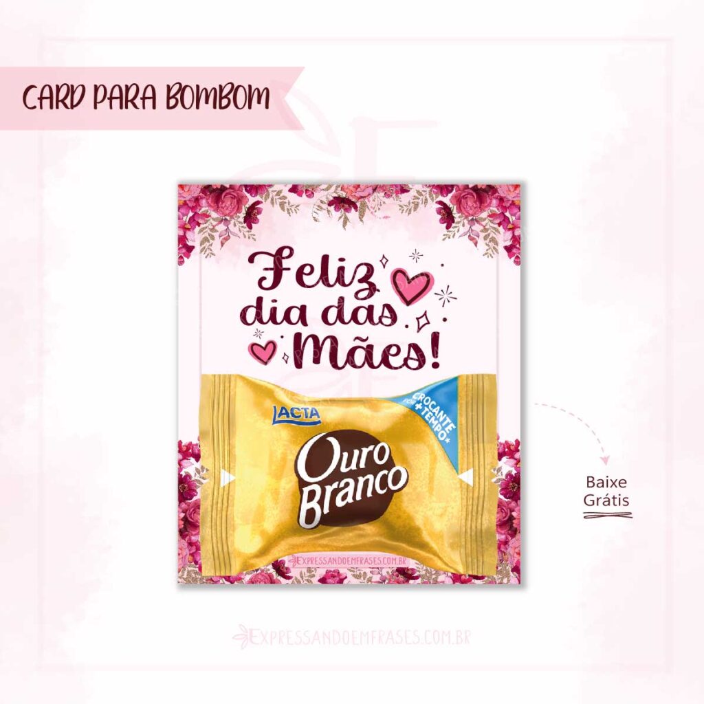 Este Card para bombom com tema de Feliz dia das Mães, está disponível para você fazer o download de forma gratuita para uso pessoal. Arquivo delicado e charmoso para colocar um chocolate gostoso e dar de lembrancinha nesta data tão especial que é o Dia das Mães. Esperamos que seja útil para você!